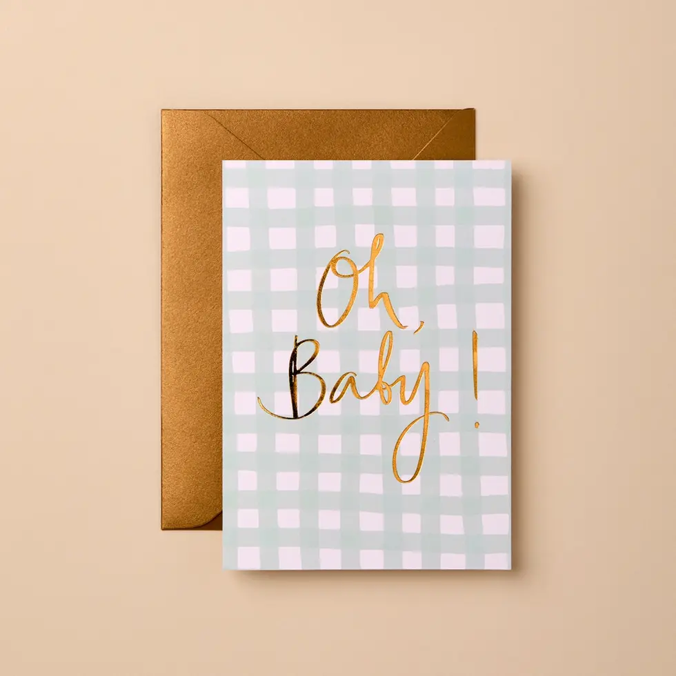 Baby Foil Greeting Card | OH BABY Green Gingham