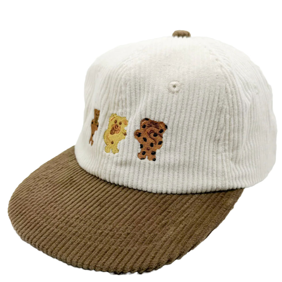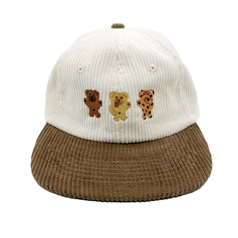 Showcasing the three tasty flavours—chocolate, choc chip, and honey—this playful hat celebrates the lil' teddy biscuits that are perfect for snacking, playing, or a sweet treat anytime.